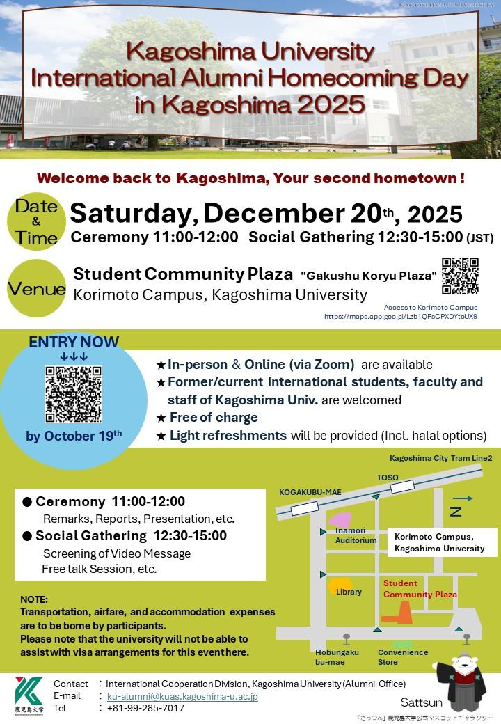 - Venue: Student Community Plaza, Korimoto Campus, Kagoshima University (In-person & Online via Zoom)