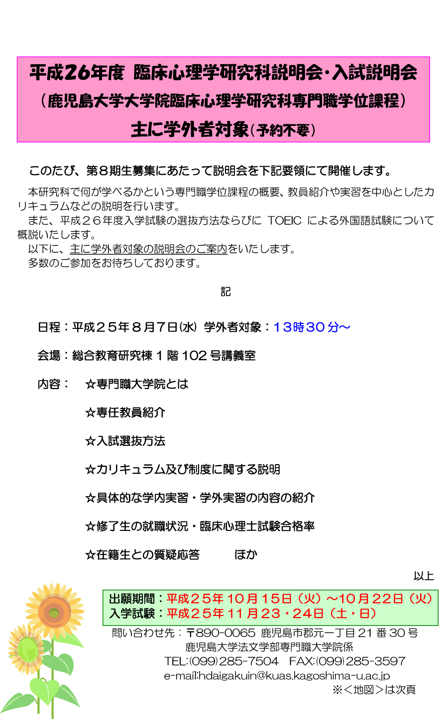 平成26年度 臨床心理学研究科説明会・入試説明会の開催について