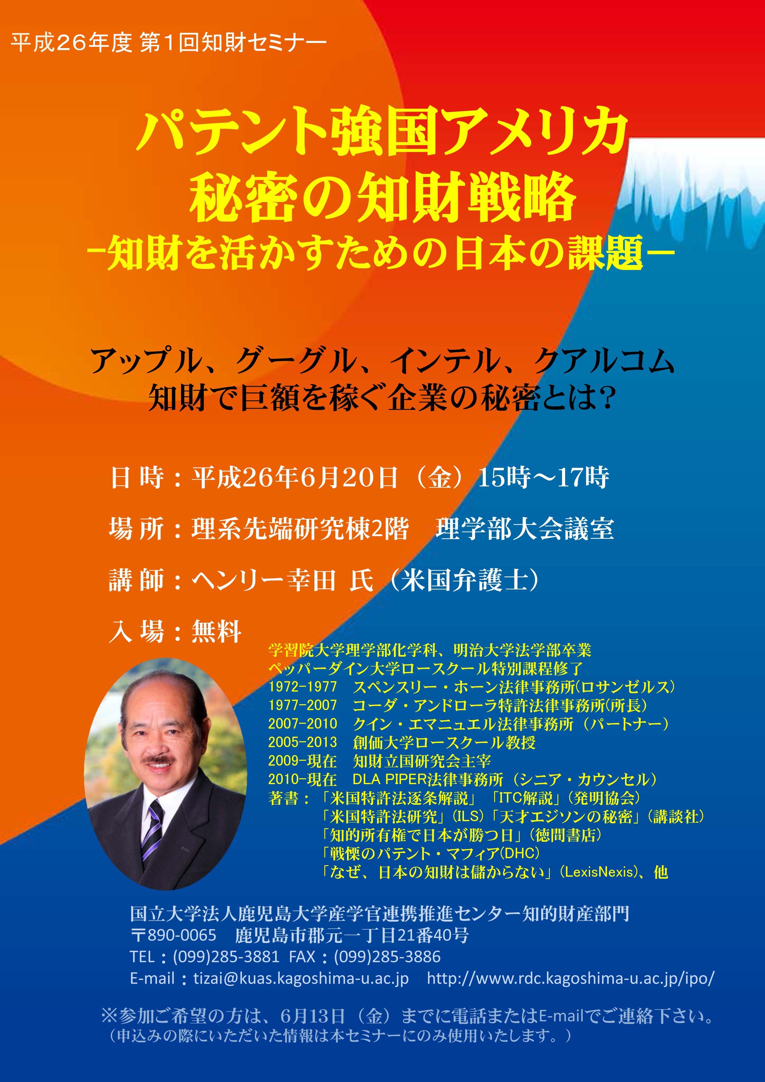 【演 題】:「パテント強国アメリカ 秘密の知財戦略」