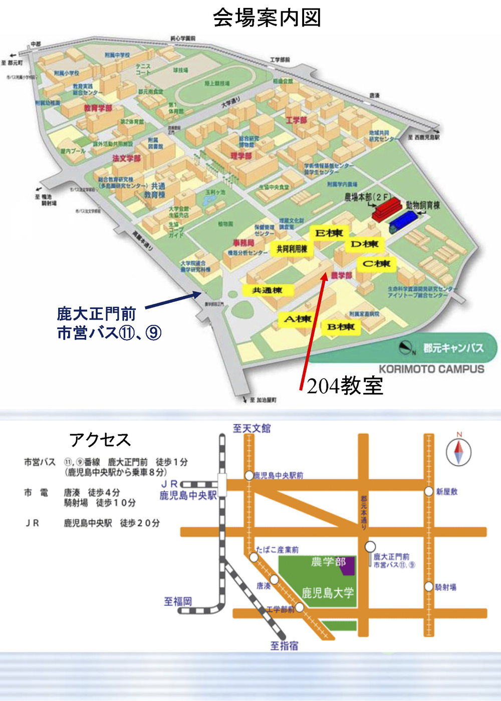 【開催場所】 鹿児島大学郡元キャンパス 農・獣医共通棟2階204教室