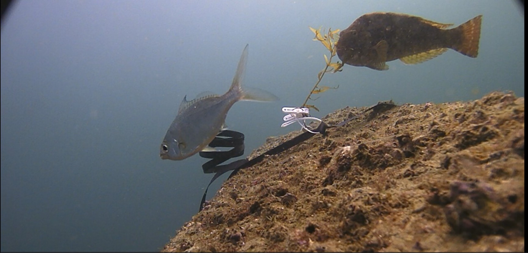私の卒論は、鹿児島県与次郎沿岸(長水路の外側)における植食性魚類ブダイの摂食活動の季節変化についてです。与次郎沿岸のブダイについては、秋-春にかけて海藻に対する摂食圧(摂食する量と回数)が変化していくことが先行研究で分かっていたのですが、この先行研究では1地点でしかビデオ撮影をしていなかったため、Rなどを使っての統計解析が出来ませんでした。そこで本研究では3地点での撮影を行い、統計解析も行ってこの現象を証明しました。また、ブダイの日周行動(約24時間周期で繰り返す、規則的な行動パターン)が季節により変化することも示唆されました。