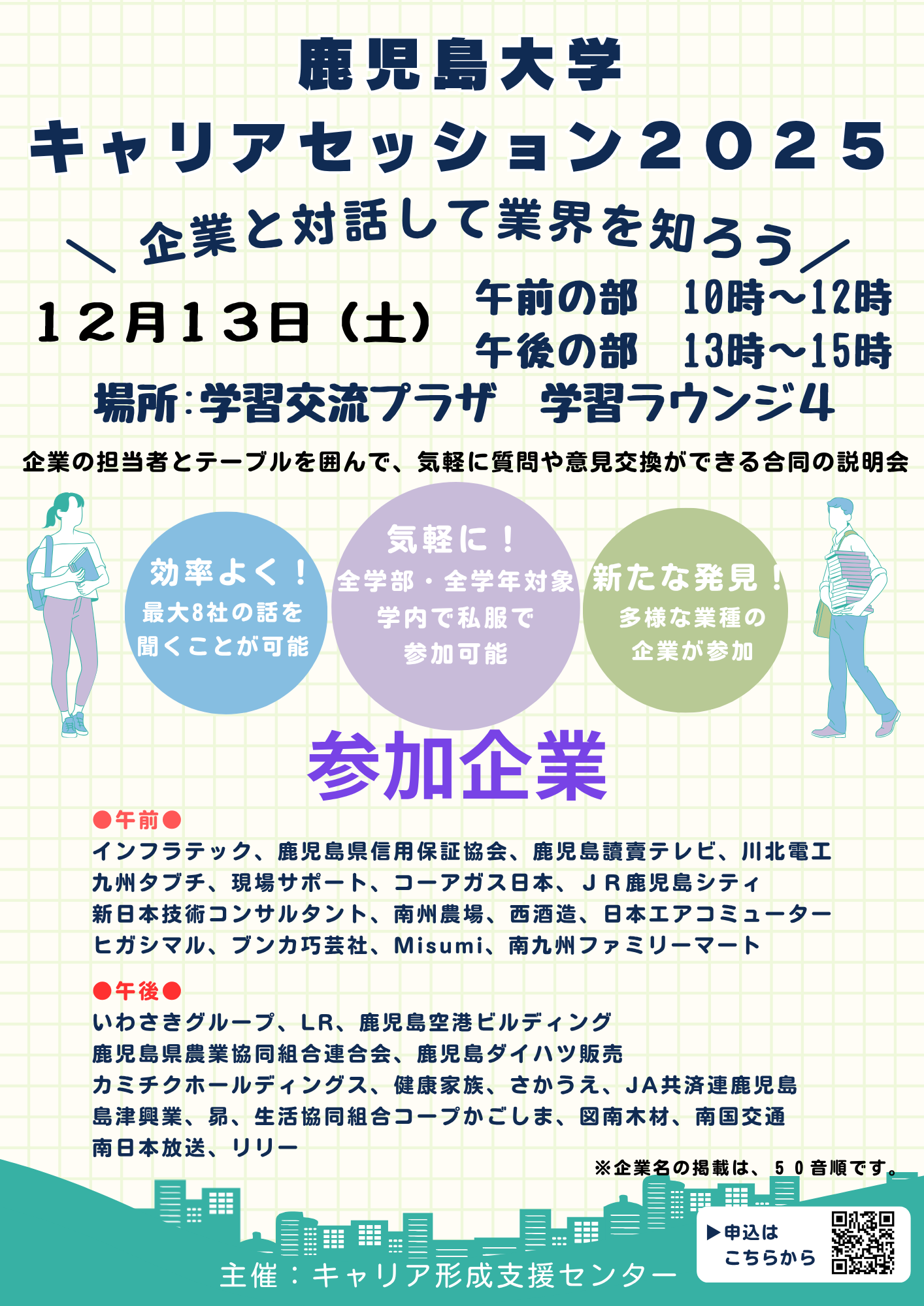 12月13日開催 鹿児島大学キャリアセッション2025~企業と対話して業界を知ろう~
