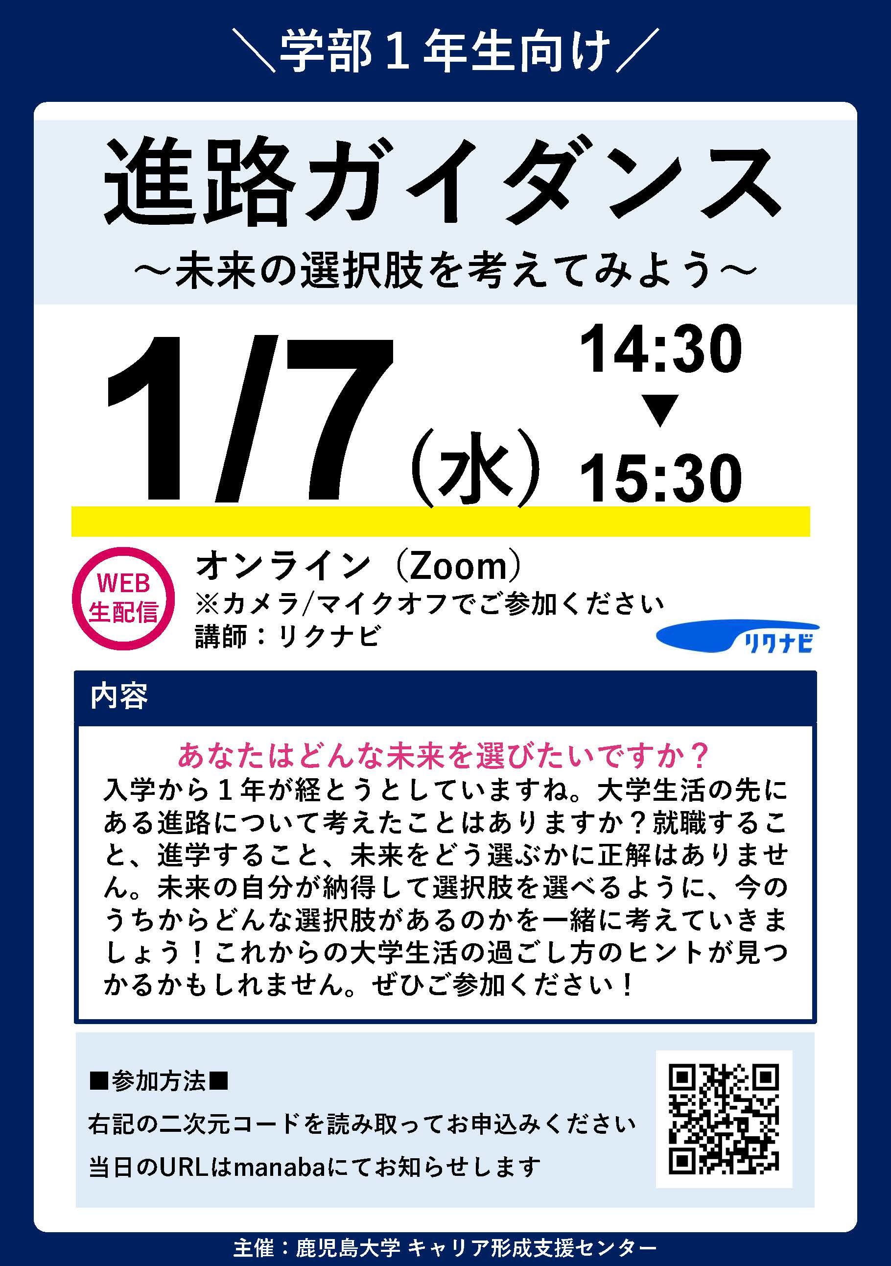 トップページキャリア形成支援1月7日開催「進路ガイダンス」のお知らせ