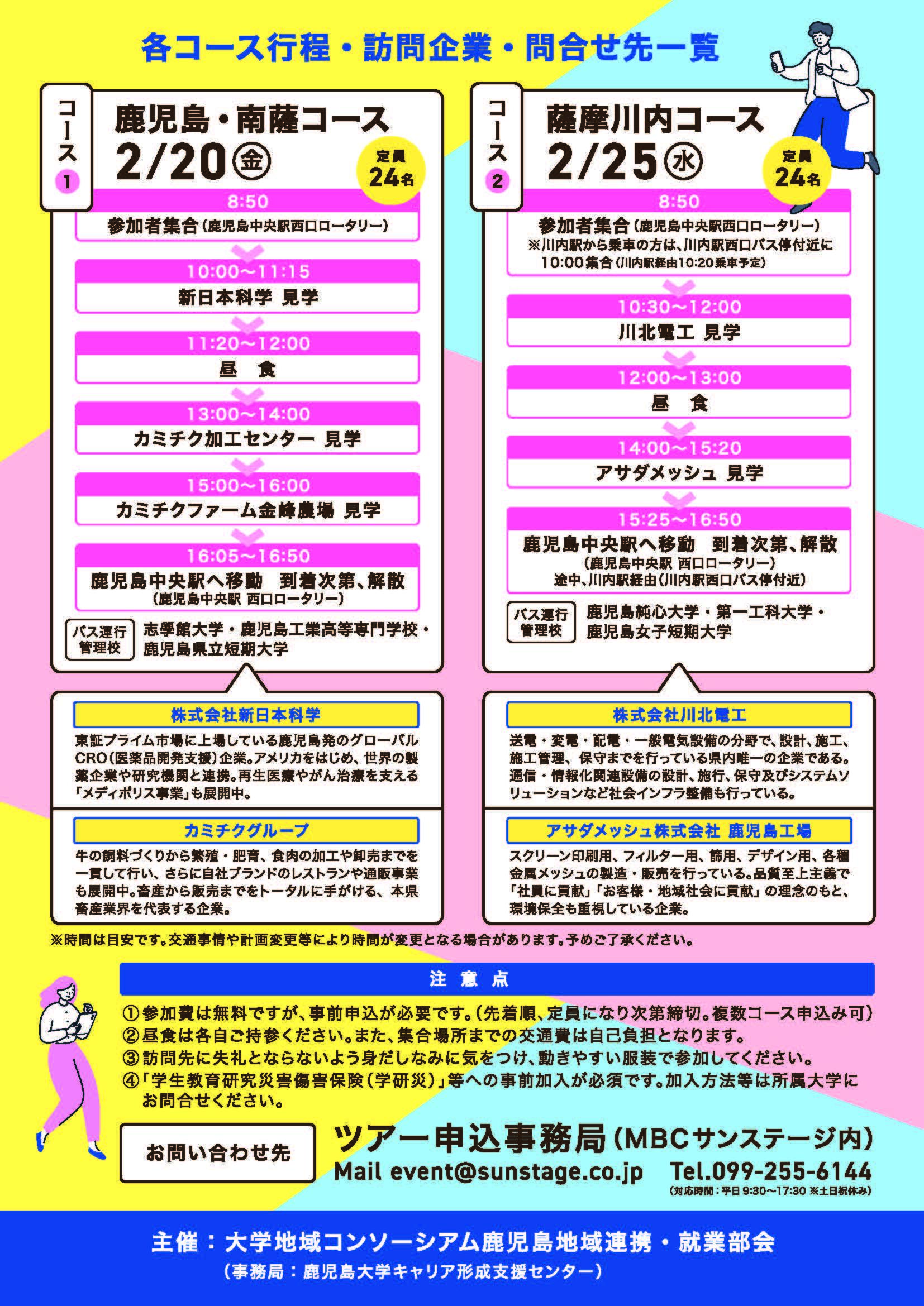 本イベントは、鹿児島県内の魅力あふれる企業を知ってもらうことを目的とした企業バスツアーです。