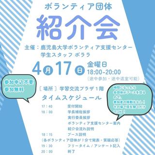 紹介会では、鹿児島大学内のボランティアサークルが各ブースに分かれ、活動の目的や様子、サークルの雰囲気などを伝えてくれます。実際に活動をしている学生から話を聞くことで、ボランティア活動がよりイメージしやすくなると思います。質疑応答の時間やフリータイムもありますので、たくさん質問等してみてください。新入生はもちろんのこと、2年生以上の学生でボランティアに興味があるという方も大歓迎です!ぜひいろいろなサークルの話を聞いてみてくださいね。昨年度の様子はこちらから!